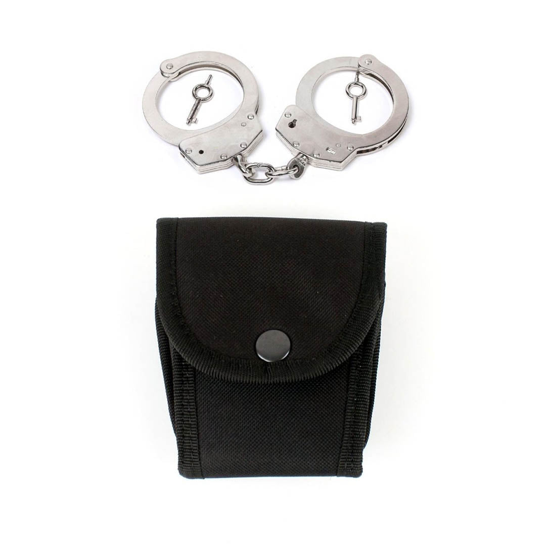 The product is a case only, the clamp is not included in the price. You can click here to buy handcuffs.