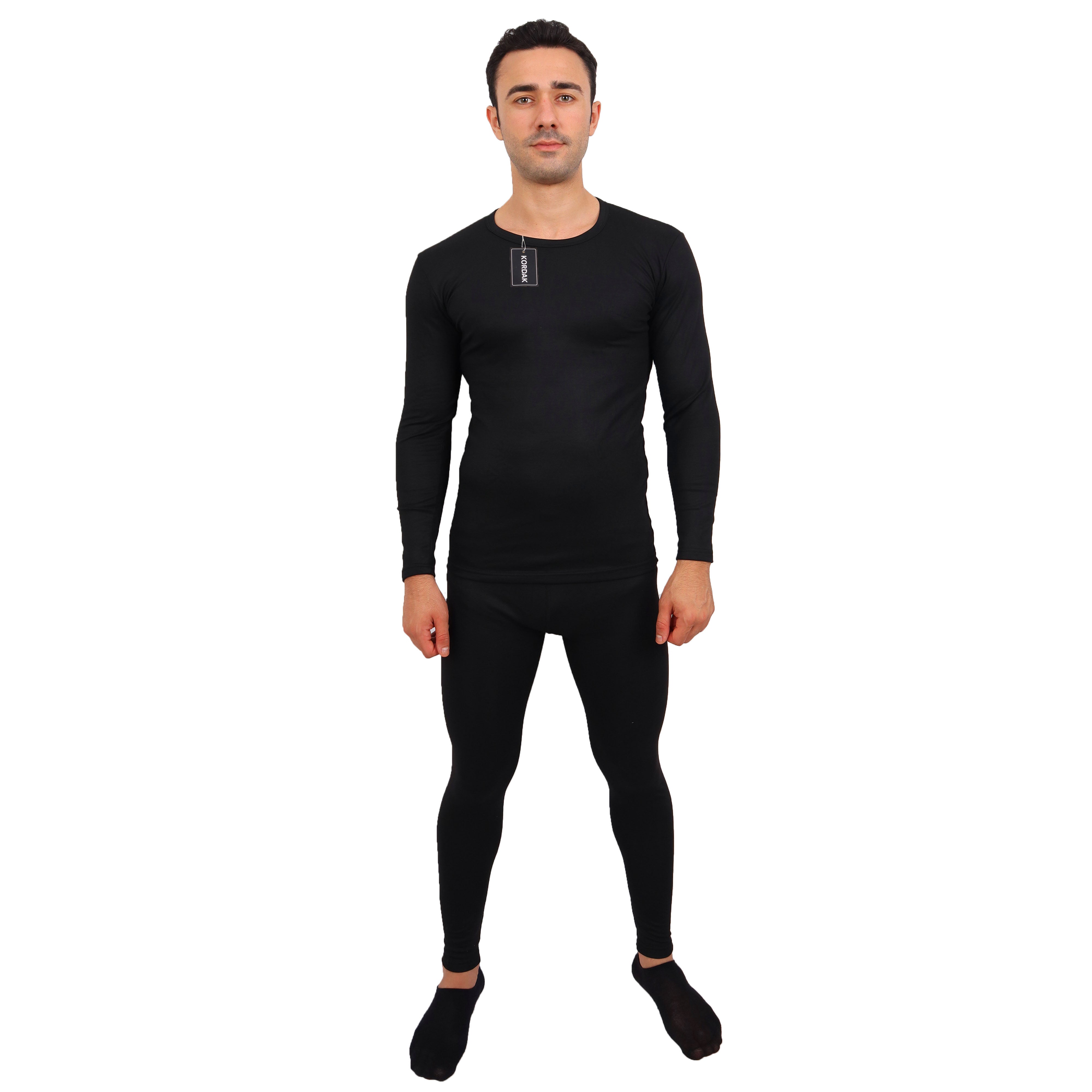 Black Thermal Underwear Set - Keeping Warm Against the Cold Top-Bottom Set